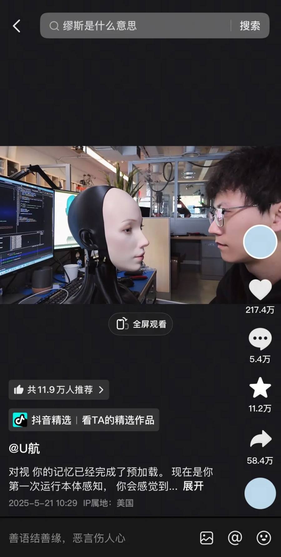 @U航也是因为一开始唤醒AI机器人精灵·璇的视频打动了用户,短短几秒就让无数人感受到了“艺术家与缪斯相遇”的具象化,此后@U航会陆续分享机器人的创作逻辑,例如如何最大程度还原皮肤质感、眼球装了高清摄像机可以将画面反馈给算法等等,让对此感兴趣的非专业用户也能听明白。