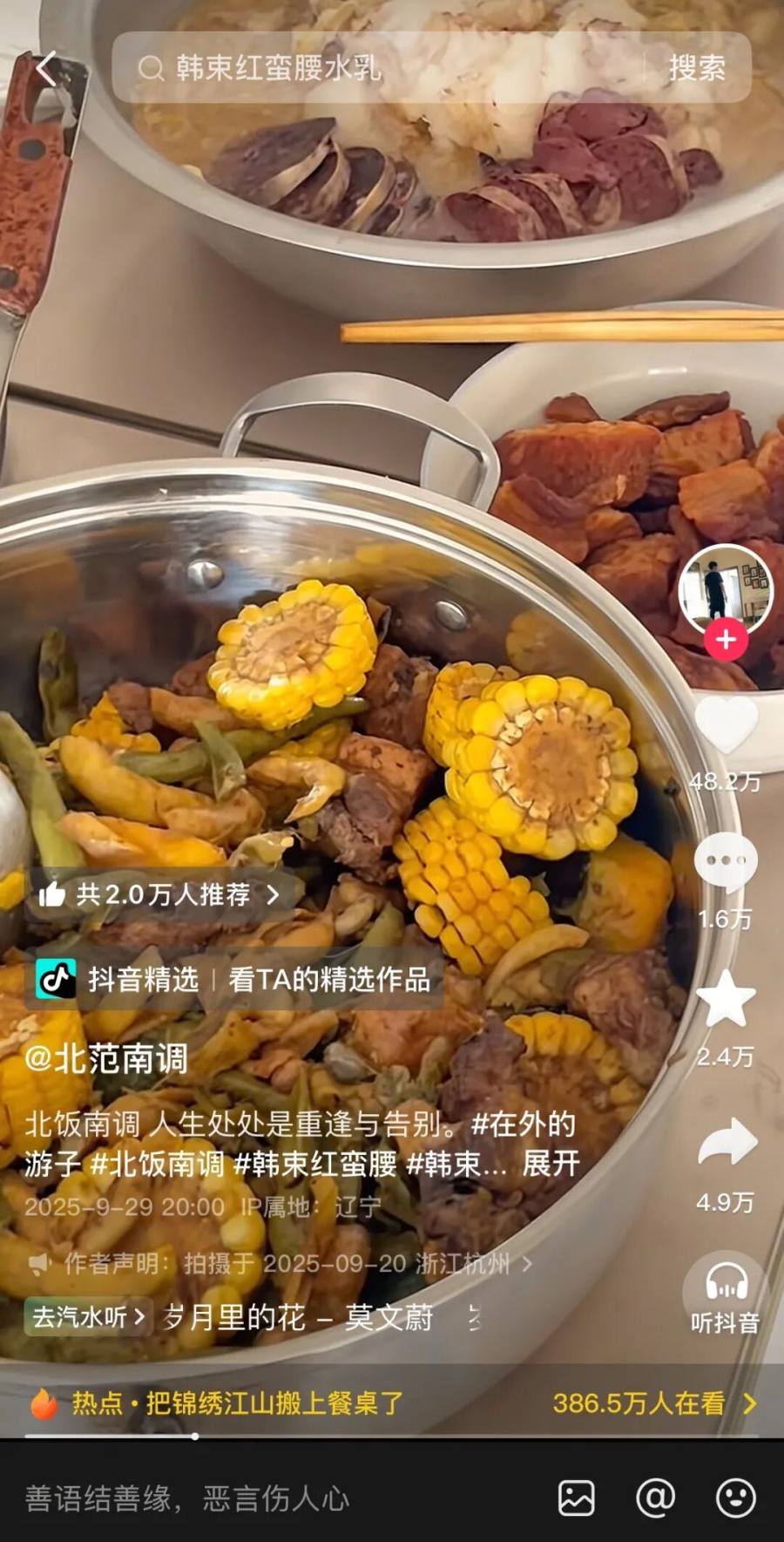 回家后,@北范南调发现发小、朋友们几乎都不在家,于是决定带着这些朋友父母做的家常菜,去看望在各个城市打拼的朋友。从陪父母们去早市买菜、到回家备菜炒菜、到跨省送菜,@北范南调记录下了整个过程。没有刻意渲染的情绪,但正是随口说出的“我家崽就爱吃这个”、妈妈突然抹掉的眼泪,牵动了无数游子的心。“看哭了,马上中秋节,打算去看看爸妈”、“很有意义的视频,拍出了社会很多年轻人的现状和无奈”,很多用户评论。