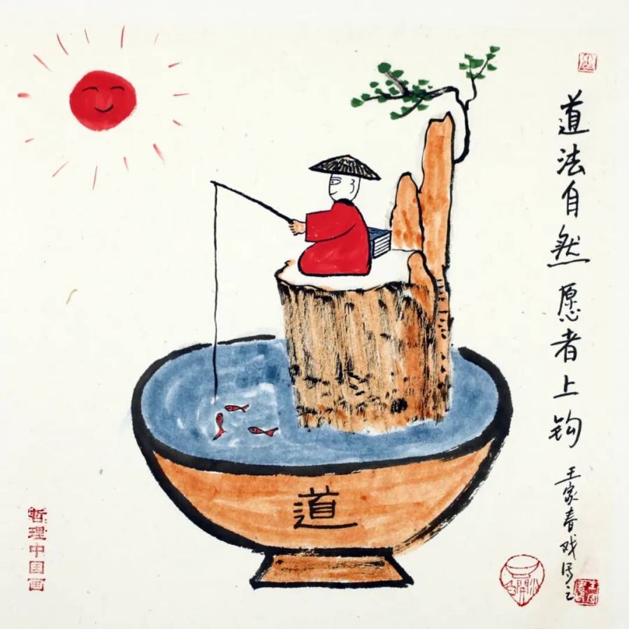 他开创的哲理中国画,融合丰子恺的清雅意境与齐白石的天真童趣,内容老少皆宜,因兼具精神滋养与审美价值,被赞为挂在墙上的 “养生保健品”。其代表作 “画说传统经典系列”(《画说道德经》《画说菜根谭》等),以艺术形式活化传统,成为传统文化当代传播的典范。