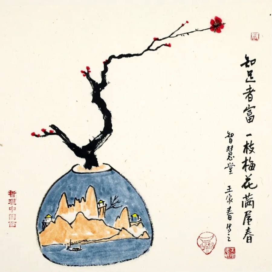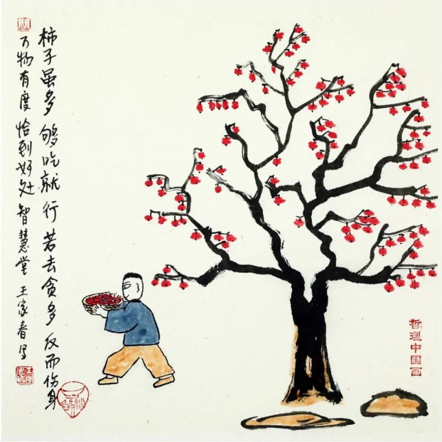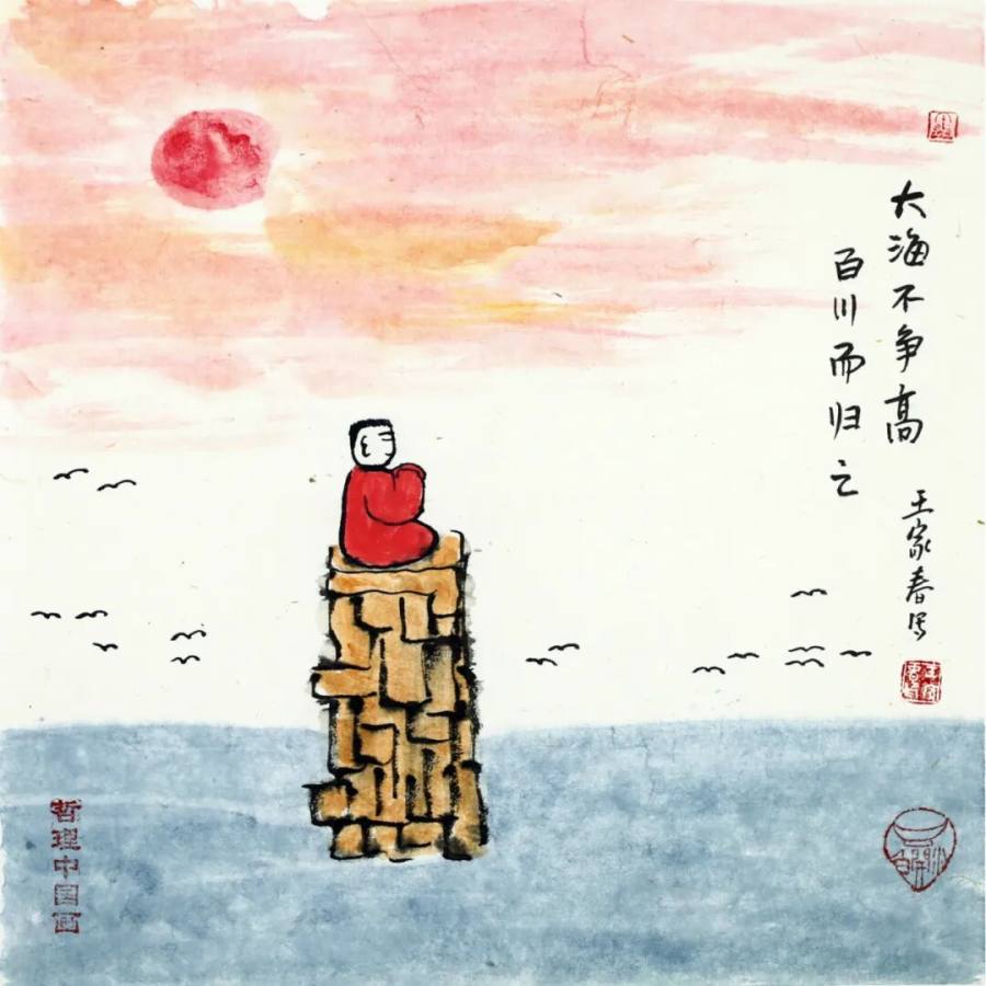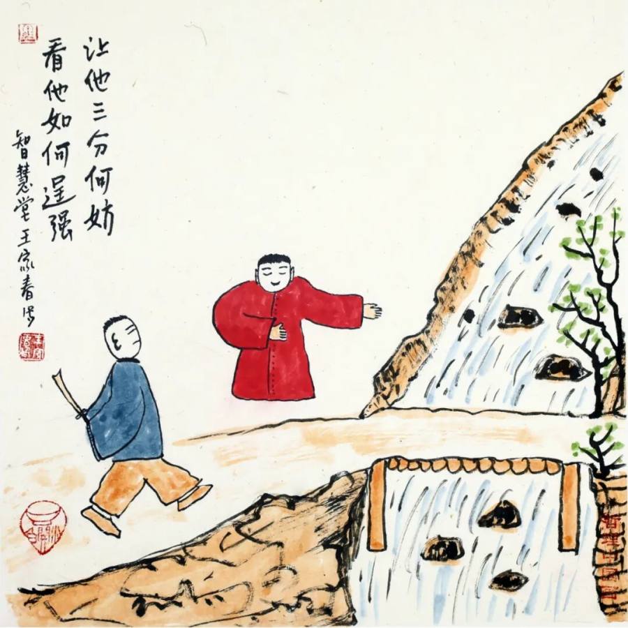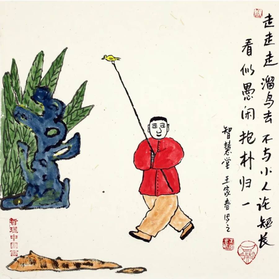 作为二十一世纪文人画的代表,王家春的艺术实践展现了传统文人画在当代的嬗变轨迹:从丰子恺式对生活情趣的诗意观照,转向对哲学智慧的深度挖掘,更强化了对现代人心理状态的关怀。其作品以朴素方式讲述深刻道理,充满童趣的画面既是心灵独白,更是给当代人的"精神解压包"。在浮躁的现代社会,这些"哲理小品"如清凉散,让人在会心一笑间领悟生命真谛,证明传统文人画既能扎根生活土壤,又能承载精神大道,更能成为缓解心理压力、给予人积极向上力量的艺术动力,为当代艺术如何传承与创新、如何介入大众精神生活提供了有益启示,彰显了文人画在新时代的独特价值与当代意义。