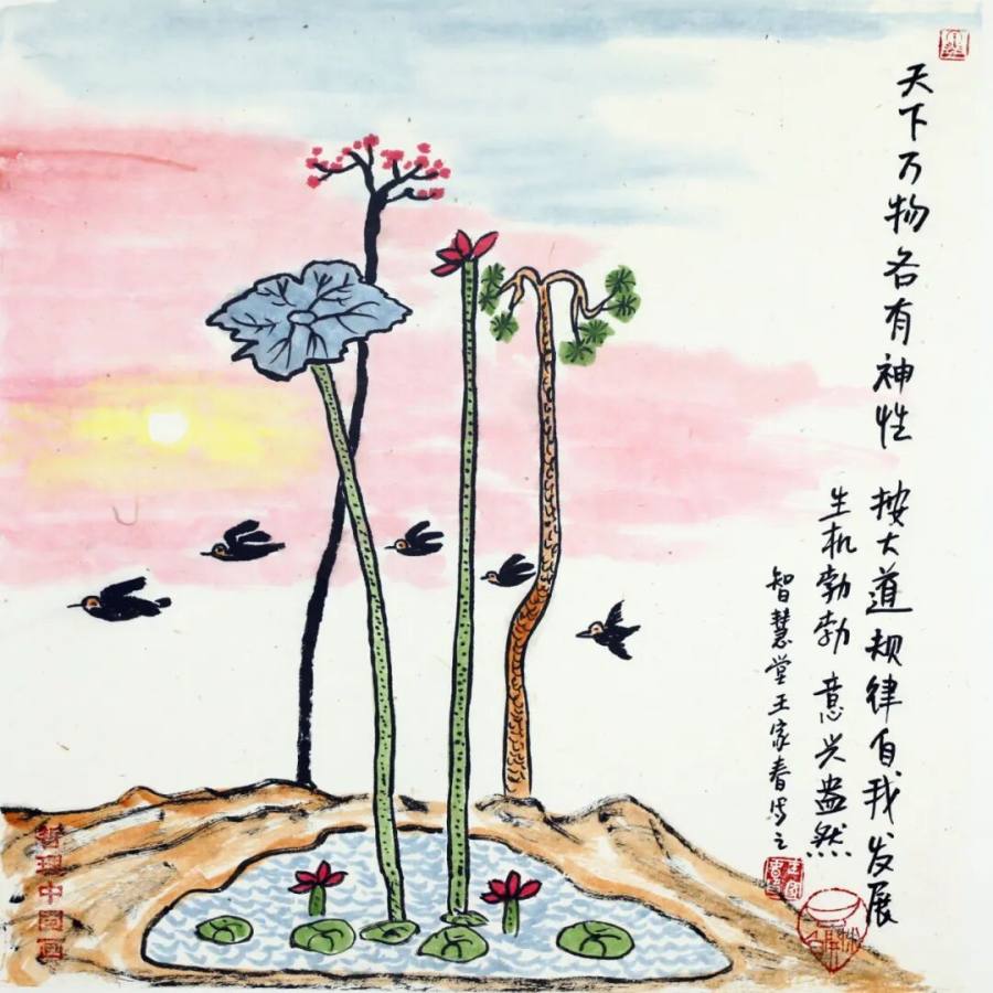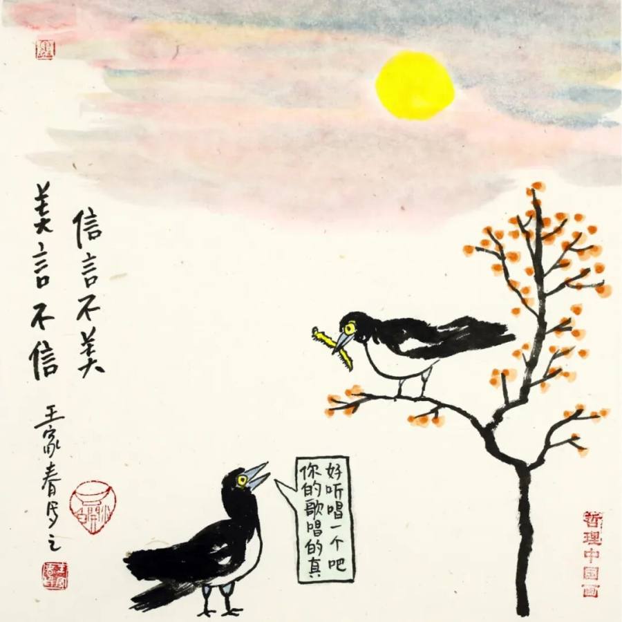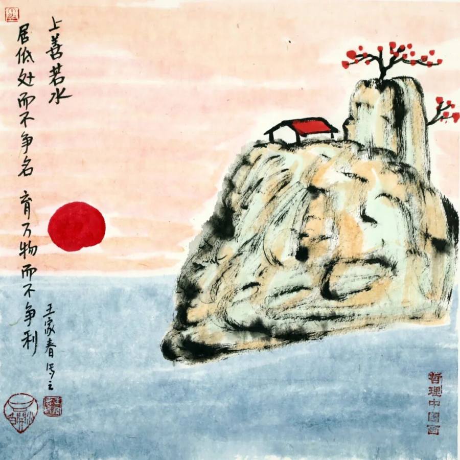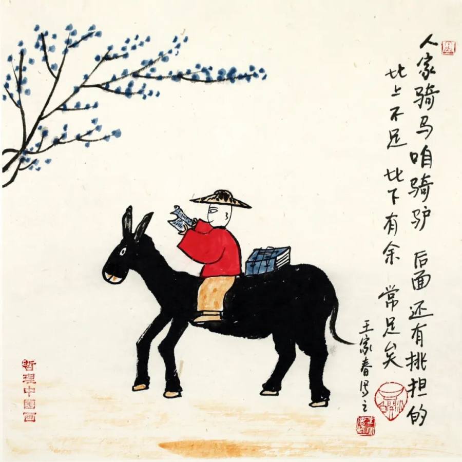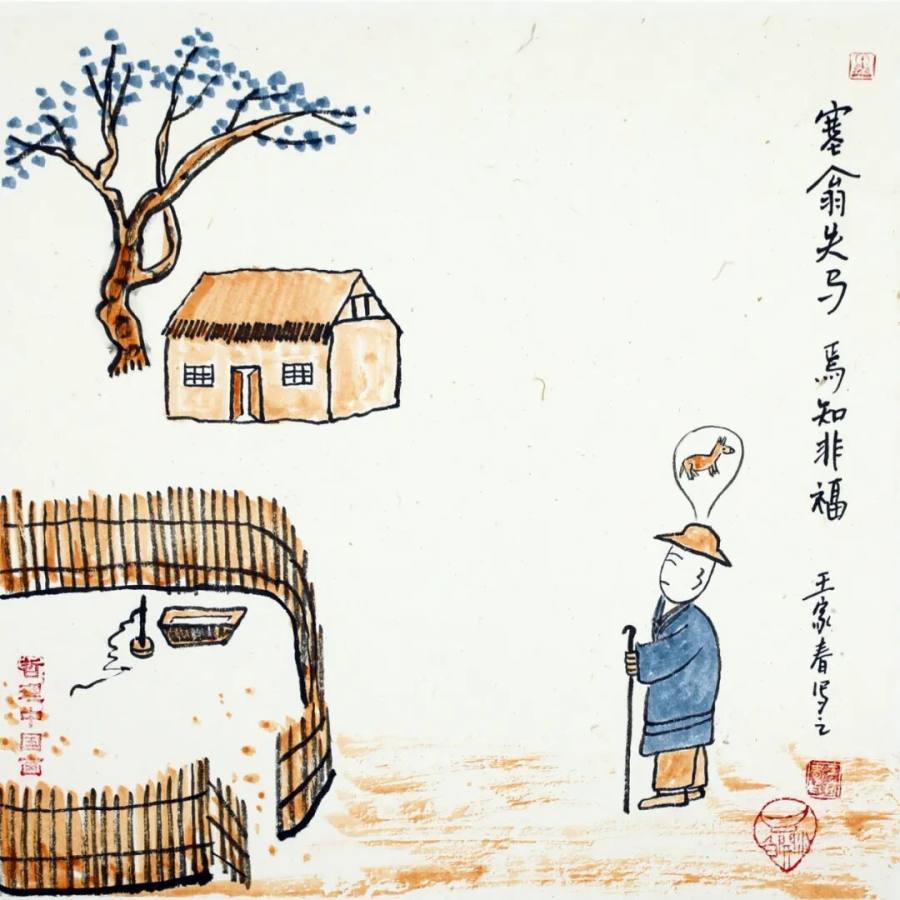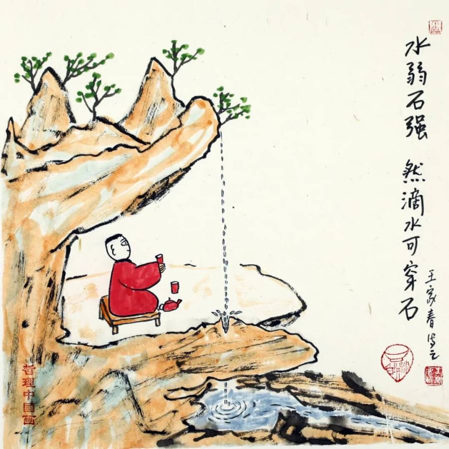 作为二十一世纪文人画的代表,王家春的艺术实践展现了传统文人画在当代的嬗变轨迹:从丰子恺式对生活情趣的诗意观照,转向对哲学智慧的深度挖掘,更强化了对现代人心理状态的关怀。其作品以朴素方式讲述深刻道理,充满童趣的画面既是心灵独白,更是给当代人的"精神解压包"。在浮躁的现代社会,这些"哲理小品"如清凉散,让人在会心一笑间领悟生命真谛,证明传统文人画既能扎根生活土壤,又能承载精神大道,更能成为缓解心理压力、给予人积极向上力量的艺术动力,为当代艺术如何传承与创新、如何介入大众精神生活提供了有益启示,彰显了文人画在新时代的独特价值与当代意义。