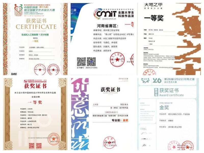 显著的育人成效,成为“四位一体”模式的最佳注脚:专业学生团队设计的作品先后斩获河南省文创设计大赛金奖、河南省第三届创意河南艺术设计大赛专业组金奖、第八届米兰设计周-中国高校设计学科师生优秀作品展国赛一等奖、第18届中国好创意暨全国数字艺术设计大赛国赛一等奖、第19届中国好创意暨全国数字艺术设计大赛国赛一等奖、第十二届全国大学生数字媒体科技作品及创意竞赛省赛一等奖、河南省首届“天地之中”创意设计大赛专业组一等奖、全省高等学校第四届“创意河南”艺术设计大赛专业组一等奖。校企联合共建的实训基地,成功获评“郑州市产教融合示范基地”;河南巨木服饰人力资源总监评价道:“通过新模式培养的学生,相比传统培养模式下的毕业生,能提前3个月适应岗位工作,独立处理工作任务的能力也更强,为企业节省了大量培训成本。”