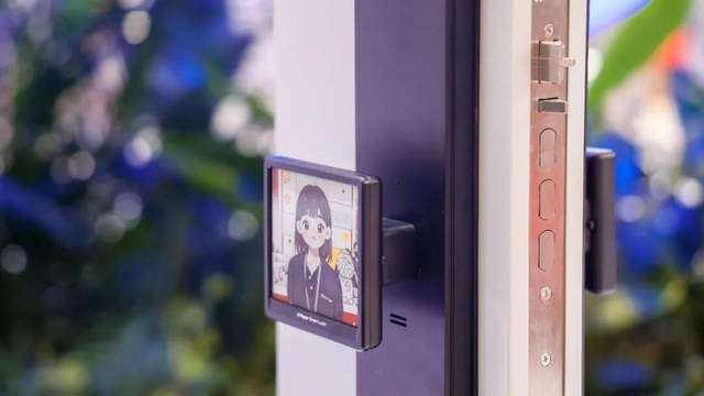 信息显示上,三块屏幕各司其职、带来更强的科技感:室外的OLED屏确保交互流畅;门把手上的行业首创水墨屏,不仅功耗极低,还能显示取件码或自定义背景图片,让家门充满个性;而室内的高清大屏则如同一只高清“猫眼”,让你对门外情况一目了然。通过屏幕,你可以实时确认访客身份,而全程的影像记录功能,则让远程为家人或朋友开门这件事,变得既方便又安心。