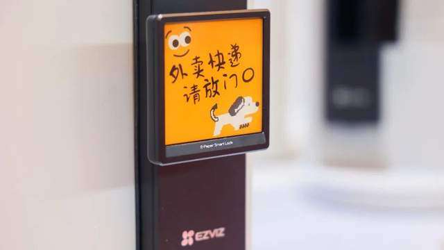 除了核心的安全功能,萤石还贴心解决了日常生活中的小麻烦。比如网购退货时,用户只需在APP提前设置取件码,快递员按门铃时,门锁的水墨屏就会自动显示取件信息,整个过程无需开门交流,省时又省力。