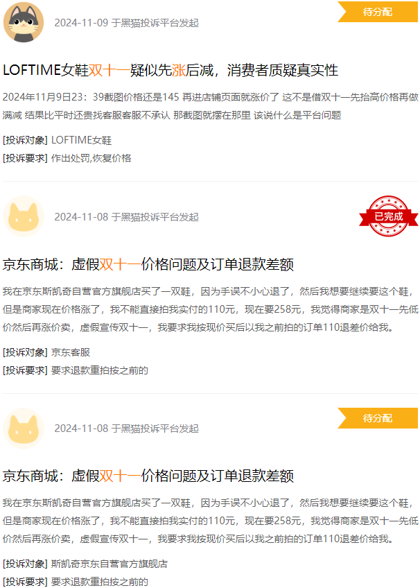 然而,年复一年的套路,正在持续透支消费者的信任。“先涨后降”的定价策略在黑猫投诉平台与小红书持续引发争议;复杂的满减计算,让购物体验沦为一场心力交瘁的算术竞赛。当消费者的预期被无限拉高,而真正的奖励感却持续缺失,那份源自购物的满足感,便在这落差中悄然消散。
