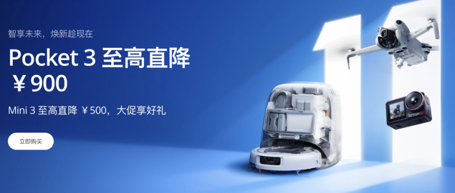 供不应求近两年的超级爆款Pocket 3 直降900元,原价3499的标准版2799到手,4499的全能套装3599到手。大疆官网显示,几乎全系产品均有官方直降,Action 5直降1050元,无人机产品DJI Mini3 最高降幅500,刚发布的扫地机器人降价超过千元。