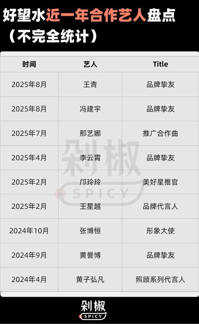如今的好望水,已跳出这种慢节奏,把“手里有什么牌就打什么牌,先让品牌跑起来”的逻辑,落地成了一套金字塔式明星资源体系。