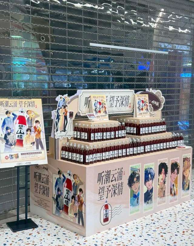 好望水选择将IP的场景认知直接转化为线下动销,不仅与南京颐和路联名推出多款限定礼盒及透卡、扇子等周边产品,构建了完整的IP消费场景;还在听潮阁公司附近的银泰盒马门店,专门设置主题堆头、人形立牌,不少粉丝前往“带行李箱扫货”。