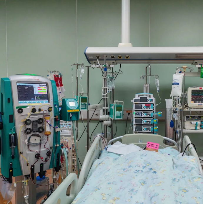 同时快速置入中心静脉导管,应用高端“解毒利器”血液净化。血浆置换(PE),去除血液中的毒素和代谢废物,还可以提供白蛋白、免疫球蛋白、凝血因子、纤维蛋白溶解蛋白和矿物盐,以维持肝细胞再生的内部环境。实施连续性肾脏替代治疗(CRRT),持续清除胆红素、血氨、细胞因子等过多代谢产物。