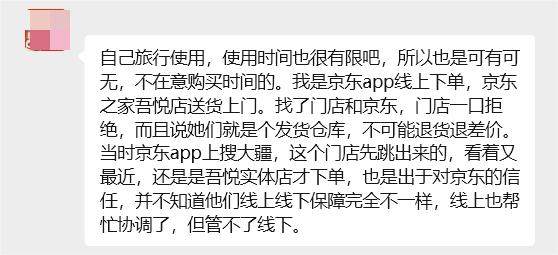 “门店一口拒绝,而且说她们就是个发货仓库,不可能退货退差价。”李露露表示,之后她又尝试通过京东线上平台协调,可得到的回复是线上管不了线下店。
