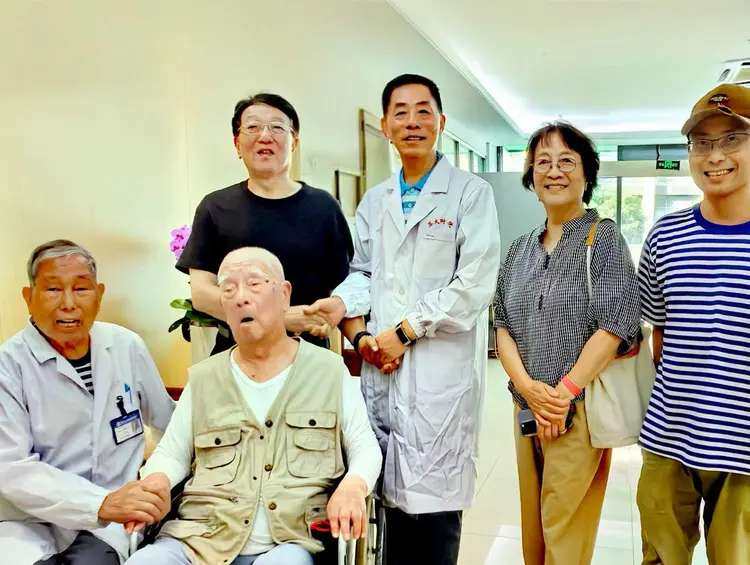 短暂的相聚,临别时,董天华教授的亲属坚持送颜纯海教授到电梯口,望着两位老人的背影,让人想起他们在震区抢救的那个新生儿——如今已是唐山市一名医生。这场迟到的重逢告诉我们:真正的医者仁心,不仅是灾难来临时的挺身而出,更是在漫长岁月中对初心的坚守。当白发遇见白发,当皱纹映着皱纹,那紧握的双手间传递的,正是跨越半个世纪的生命礼赞。(潇然)