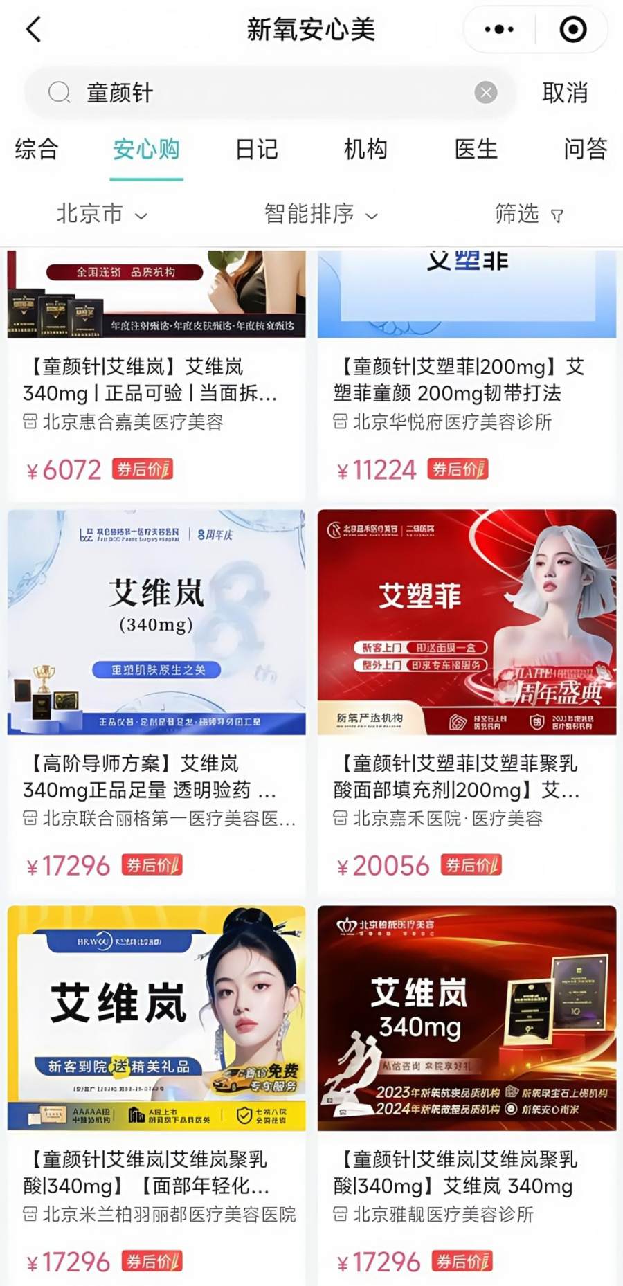 从价格维度来看,已上市产品普遍定位高端,单次治疗价格多在万元起步。以江苏吴中代理的艾塑菲为例,其200mg规格在新氧“安心美”小程序的部分合作医美机构中,国庆促销期间的秒杀价为11224元;丽珠医药旗下塑妍萃367.5mg规格的市场标价约为20056元;而长春圣博玛的艾维岚340mg规格,券后价格普遍在17296元。