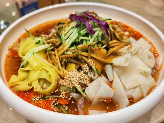 月亮米砂锅麻酱米线(东明路店)招牌麻酱米线是重头戏,砂锅熬煮的汤底鲜醇,米线滑溜筋道,浇上浓醇麻酱拌匀,香得直冒热气。搭配的小吃也毫不逊色:酸辣面鱼滑嫩开胃,肉夹馍外皮焦脆内馅多汁,涮牛肚浸满红油麻酱,还有解腻的糖水清甜爽口。