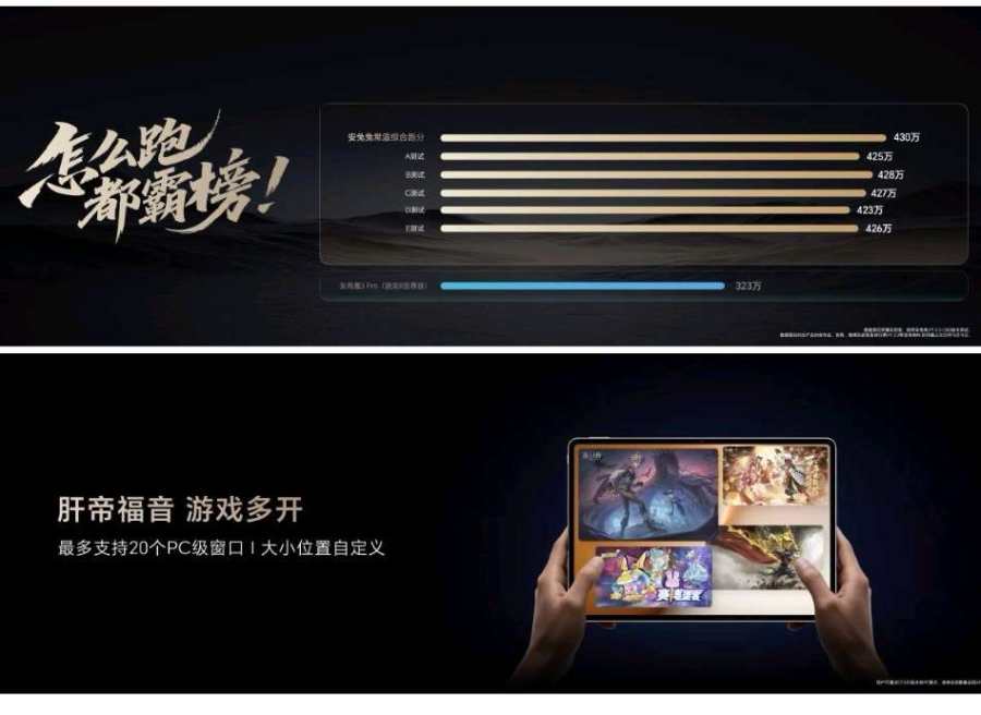 作为全球首款搭载第五代骁龙8至尊版的平板,荣耀MagicPad3 Pro打破安卓平板芯片滞后手机一代的行业潜规则,真旗舰,不等待。荣耀MagicPad3 Pro在常温下安兔兔跑分高达430万,制霸行业跑分榜单,是性能最强的安卓平板;最多同时运行20个窗口,畅玩多游戏时还能支持视频语音聊天,为热爱游戏的玩家群体带来“肝帝福音”。