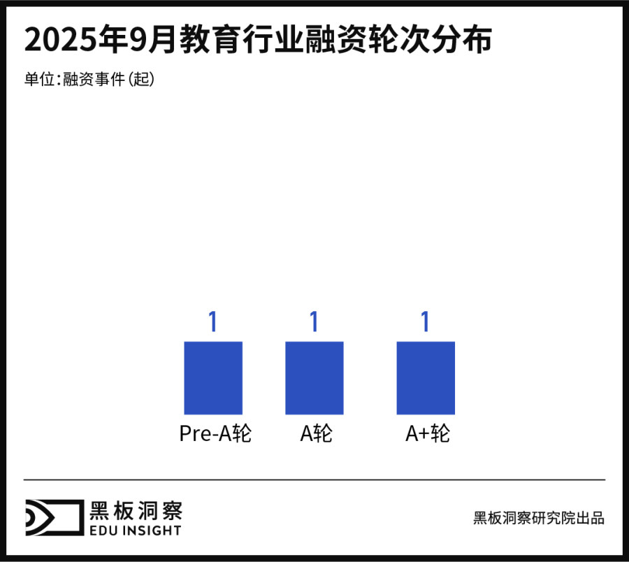 9月教育行业共发生了3起融资事件,其中A轮1起,A+轮1起,Pre-A轮1起。