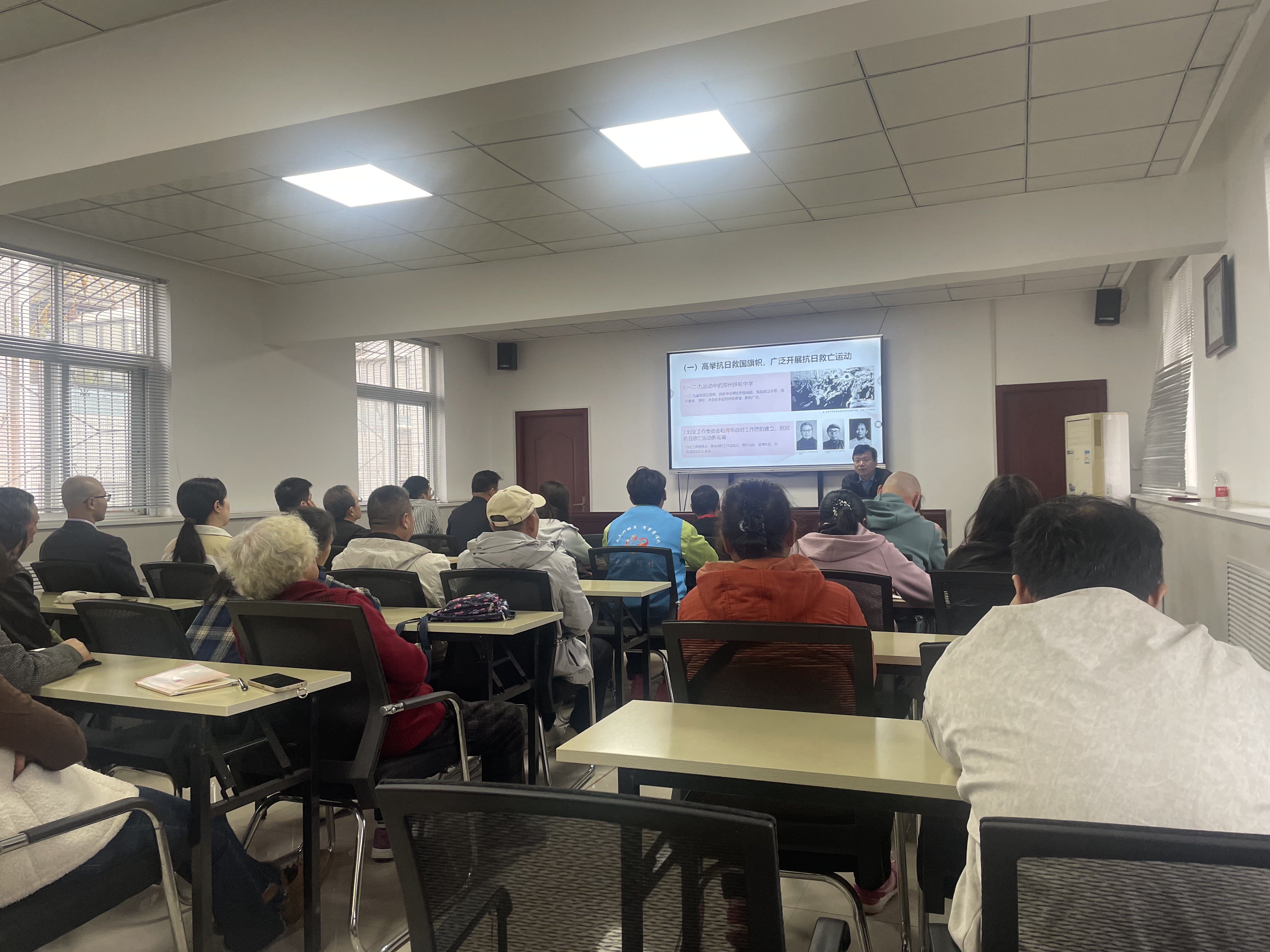 活动中,丁淑杰主任聚焦“郑州抗战”主题,从全面抗战爆发前日本对郑州的渗透与阴谋;全面抗战爆发后日本对郑州的侵略与暴行;国民党顽固派的反共行径与郑州抗战的艰难处境;中国共产党在郑州的抗战活动;第一战区受降仪式在郑州举行,郑州抗战胜利结束五个维度,进行了系统阐释。通过详实史料与英雄事迹的生动呈现,再现了烽火岁月中先辈们为民族独立与人民解放浴血奋战的壮阔图景,令在场人员仿佛置身历史现场,深切感悟革命精神的伟大力量。