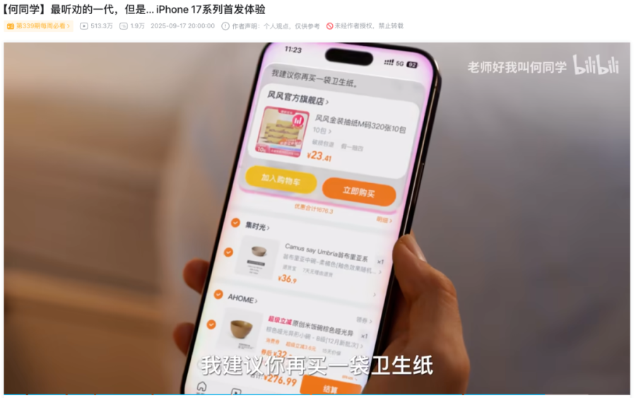 比如,何同学在iPhone 17系列首发体验视频中就无奈地表示,“体验了很多手机系统中的AI功能,最大的感受就是这些功能很像4399小游戏合集,加起来也没有ChatGPT App好用”。
