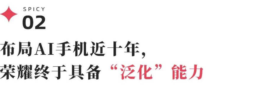剁椒Spicy认为,荣耀Magic8系列的AI优势,体现在对用户需求的深刻理解之上。此前不少AI手机虽然也加入了AI功能,但未成体系,用户的使用成本反而被拉高。反观荣耀Magic8系列,无论是一系列被动、主动AI服务,还是机身侧面的物理“AI键”,都致力于简化用户的操作,给用户提供“确定性”。