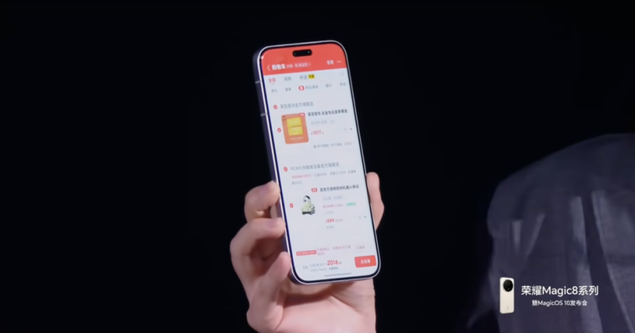 然后,主持人短按荣耀Magic8系列的“AI键”,让YOYO通过识屏功能识别对应的商品,再下达“帮我找到对应的优惠券,用最优惠的价格购买”命令。结果短短几秒钟后,荣耀Magic8系列就成功加购对应的商品,并自动领取相应的优惠券,最终结算价约2016元,比观众结算价低约600元。