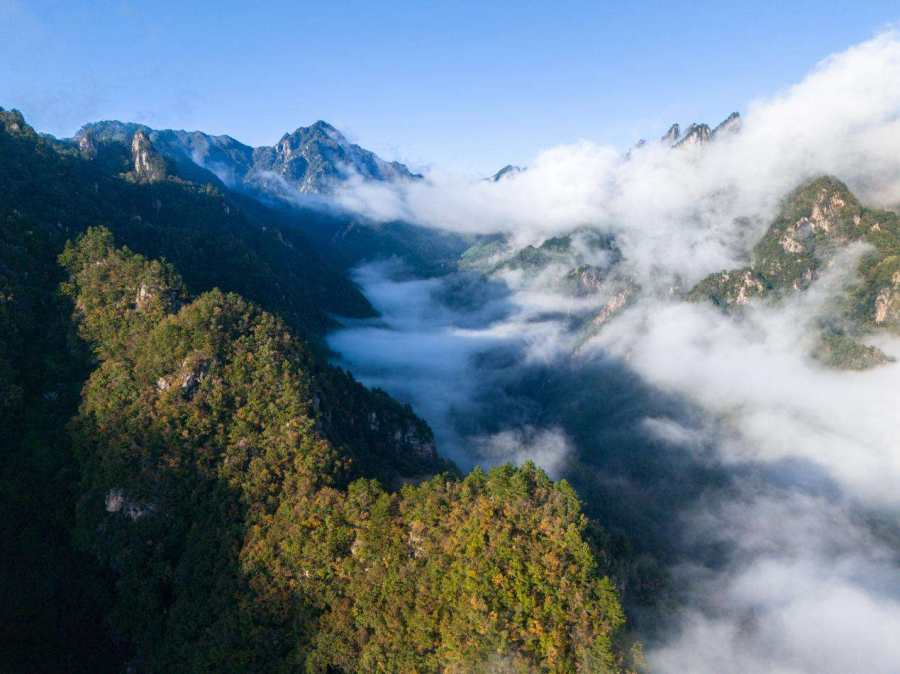 老界岭是中国南北气候的分界线,长江流域和黄河流域的分水岭,森林覆盖率高达97.8%,平均海拔1500米。每年10月下旬至11月中旬,是老界岭彩林最佳观赏时间。