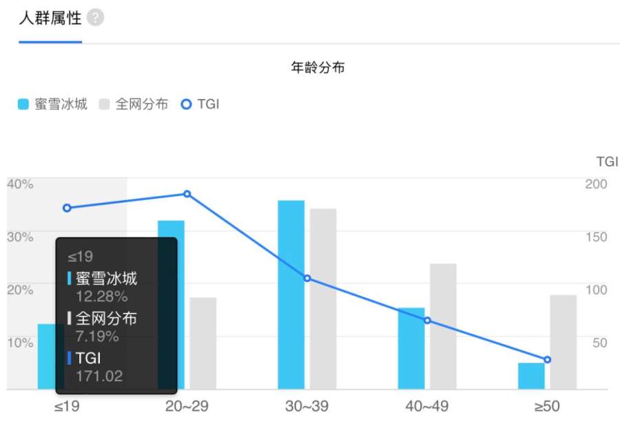 事实上,作为价格亲民的国民茶饮品牌,蜜雪冰城的受众范围极为广泛。百度指数显示,在蜜雪冰城关键词的人群画像中,小于19岁的人群占比高达12.28%。