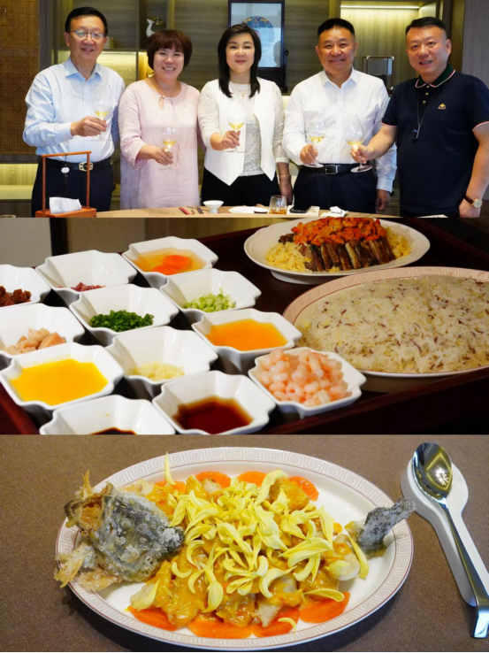 在松风雅宴(李公堤店),代表团重点考察了企业全流程标准化管理体系,从食材采购的源头把控,到分拣、加工的精细化操作,每一个环节的规范流程都被详细记录。松鼠桂鱼、老苏州桂香肉、皇家佛跳墙等特色菜品,以新鲜的食材、精致的摆盘让人眼前一亮。