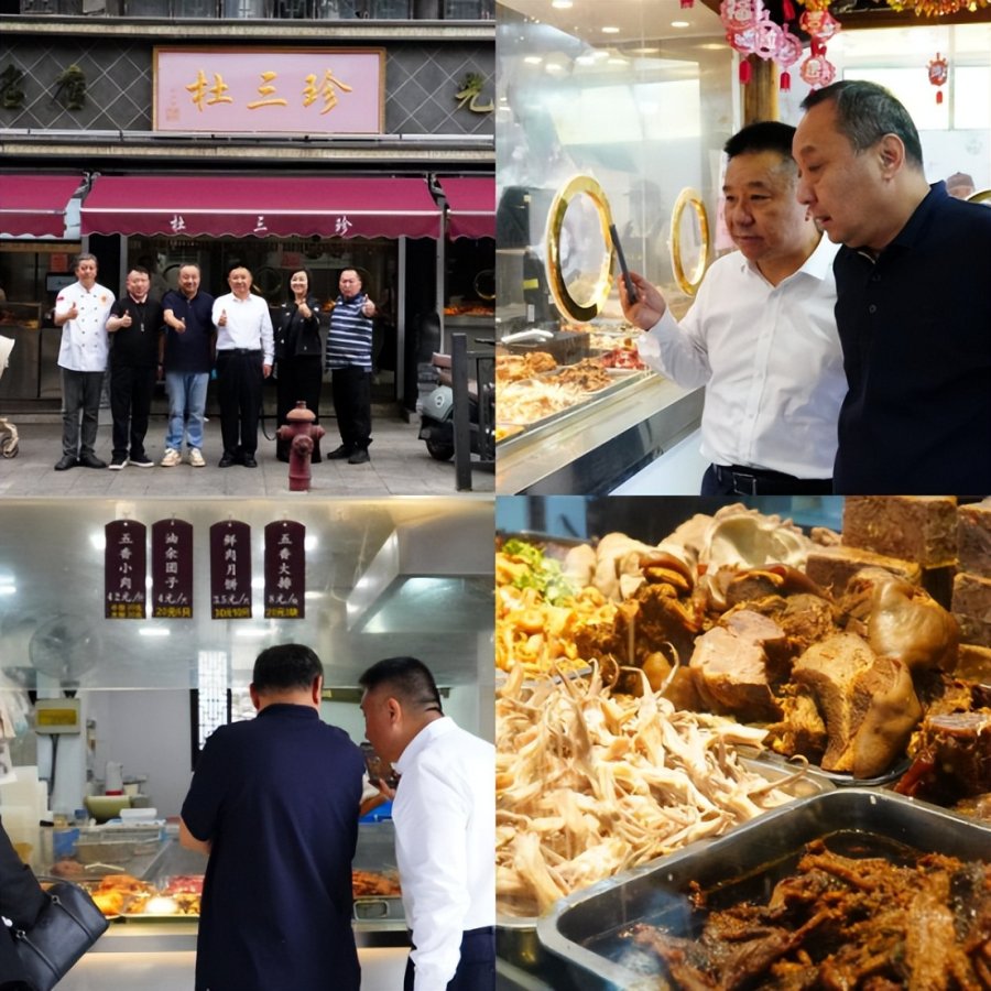 随后,代表团一行人移步至始创于清朝光绪年间、以酱卤制品闻名的苏式卤味标志性品牌杜三珍。代表团重点考察其卤味生产与经营体系,详细了解品牌“百年老卤”的养护秘诀。