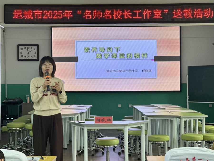 秋启新程,教研同行。为了充分发挥“名师名校长工作室”的示范、引领和辐射作用,帮助基层学校解决管理与教学中的实际问题,搭建城乡教育交流平台,促进区域教育均衡高质量发展。2025年10月16日,运城市小学数学何晓娜名师工作室赴平陆县送教下乡,活动在平陆县第一小学拉开帷幕,分为课堂展示、评课议课、专题讲座三个环节。由王艳莉老师主持,平陆县教研室小学组徐俊霞主任和教研员仪新丰老师全程参与,工作室部分成员及平陆县一百余名小学数学教师参加活动。