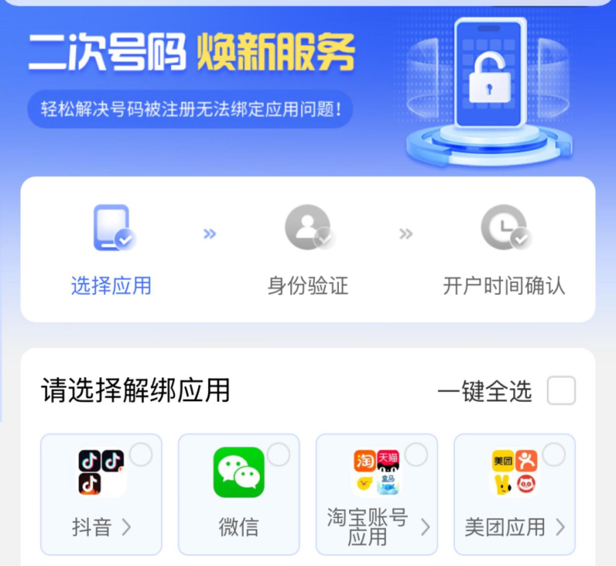 于是为了查漏补缺,就算手机号已经被“现任”启用,他们也能通过“一键焕新”服务处理该号码的历史遗留问题——该服务是在工信部指导下,由运营商从自身层面发起对手机号曾经注册过的应用账号的解绑申请。新用户通过运营商官方APP提交解绑请求,勾选需处理的应用,经身份验证后,运营商会向有关平台提交申请,一般5日内即可完成解绑。