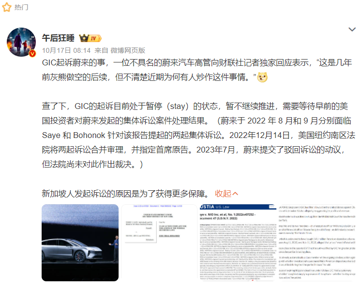 想知道新加坡主权基金为什么会起诉蔚来,还得要聚焦灰熊对蔚来的做空报告。