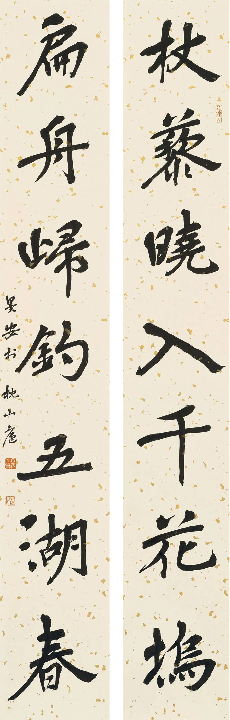 《杖藜 扁舟》行书七言联-150x24cmx2