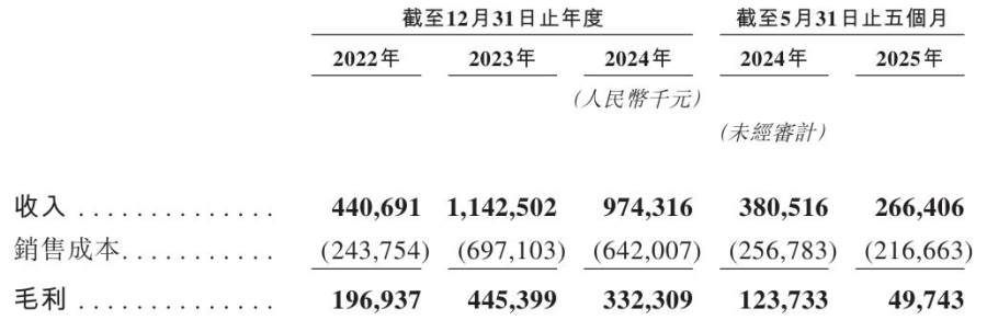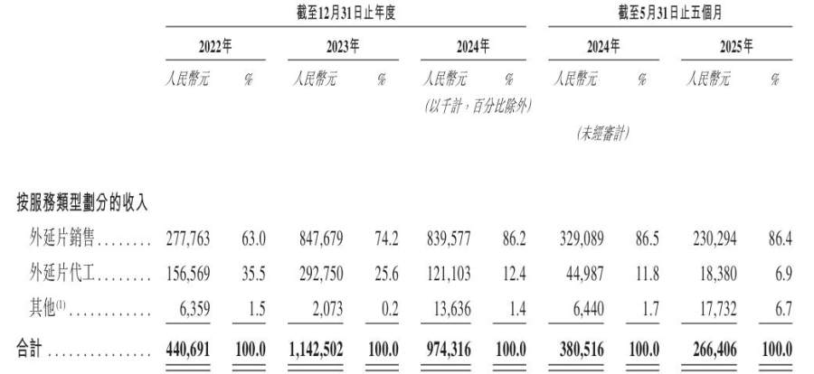 瀚天天成在招股书中解释称,其2023年收入的大幅增长主要得益于全球电动汽车及充设施需求扩大,推动碳化硅功率器件销量增长;2024年、2025年前五个月收入的回落则分别与外延片代工模式、外延片销售服务收入减少有关。