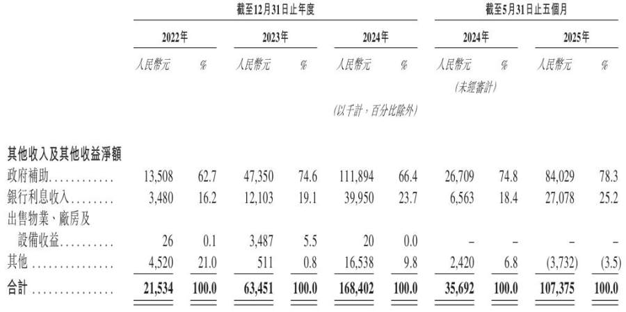 背道而驰的业绩指标背后,是瀚天天成连年攀升的补助金额。2022年、2023年、2024年度和2025年前五个月(同“报告期”),该公司分别收到政府补助1.35亿元、4.74亿元、11.19亿元和8402.9万元,占利润的比重愈发显著。