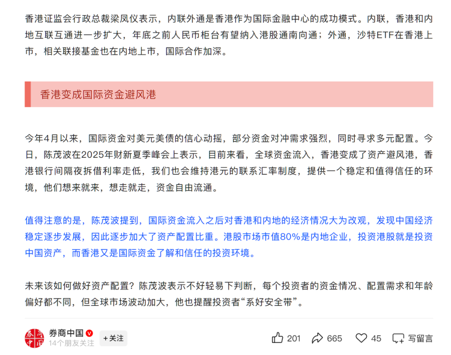 在地缘政治博弈加剧的国际格局中,没有人愿意做出有风险的选择,香港就是避风港,是出海或者“入华”的枢纽。看清这一点,可能比贪图任何短期的政策红利都更为重要。