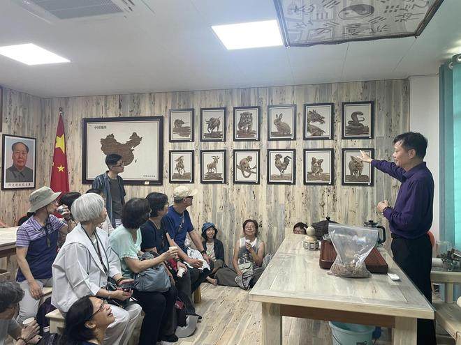 在被誉为“木中钻石”的“棋楠壹号”母树前,汪科元向嘉宾(台胞)讲述了这株培育于1997年的珍贵母树的源流与价值。其结出的沉香甜韵清雅、品质卓绝,生动印证了茂名作为“伽楠香原产地”的独特地位。随后展示的沉香文创贴画,巧妙融合传统香道美学与现代生活艺术,成为沉香走入寻常生活的创意载体,引得大家驻足细赏、赞叹不已。