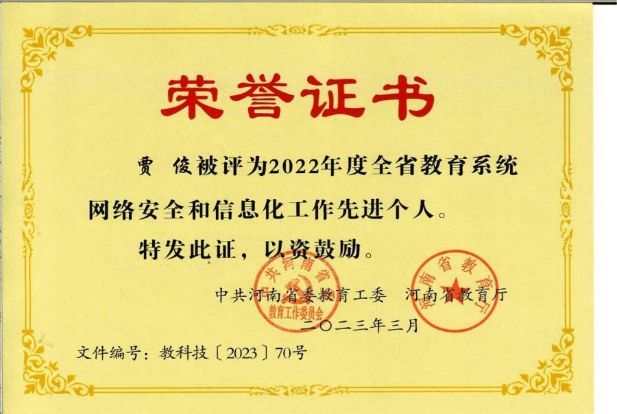 深耕信建十二载,技术绘就新蓝图——记郑州理工职业学院全省教育系统网络安全和信息化工作先进个人贾俊