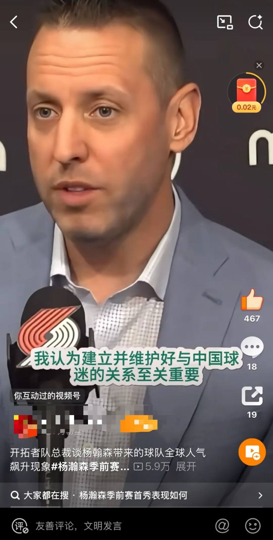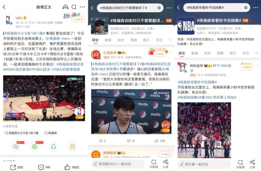 在季前赛热度及前置话题的加持下,此次NBA新赛季还没正式开启,就释放出了可观的商业潜力。例如开拓者总裁在采访中就直言,“杨瀚森的人气飙升让开拓者被更多中国球迷所认识,若运营得当未 来也将带来可持续的商业机遇。”这充分说明在社媒的运营带来的巨大商业可能性。