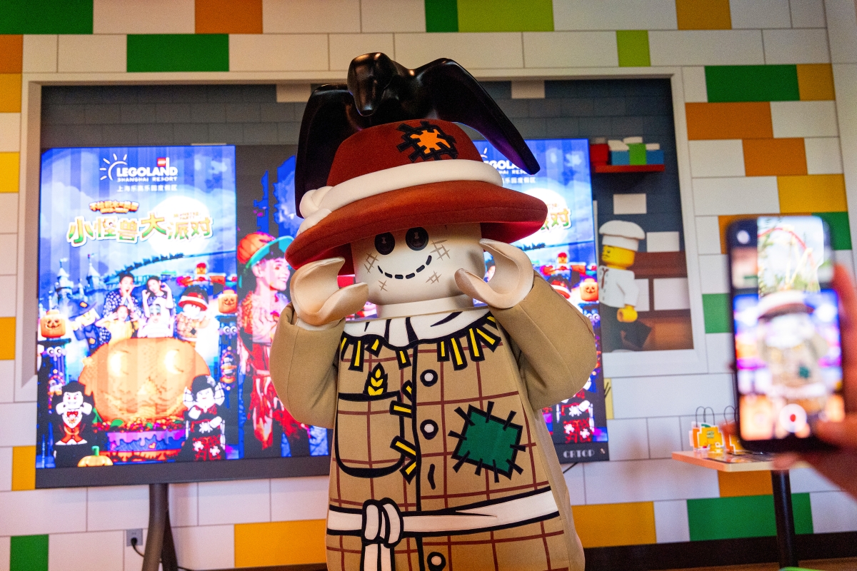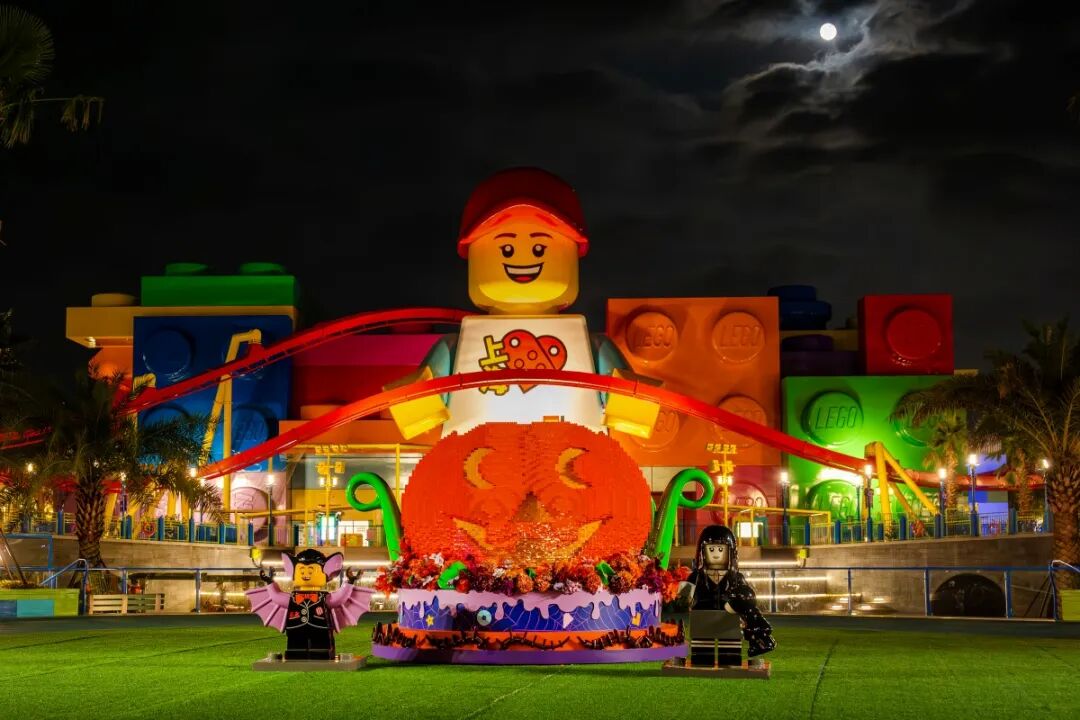 正值乐园季节性庆典“小怪兽大派对”期间,随处可见乐高积木拼砌的南瓜模型、怪兽装饰,整个场景在保留乐高特色之余,平添了一份节日的奇趣与灵动。