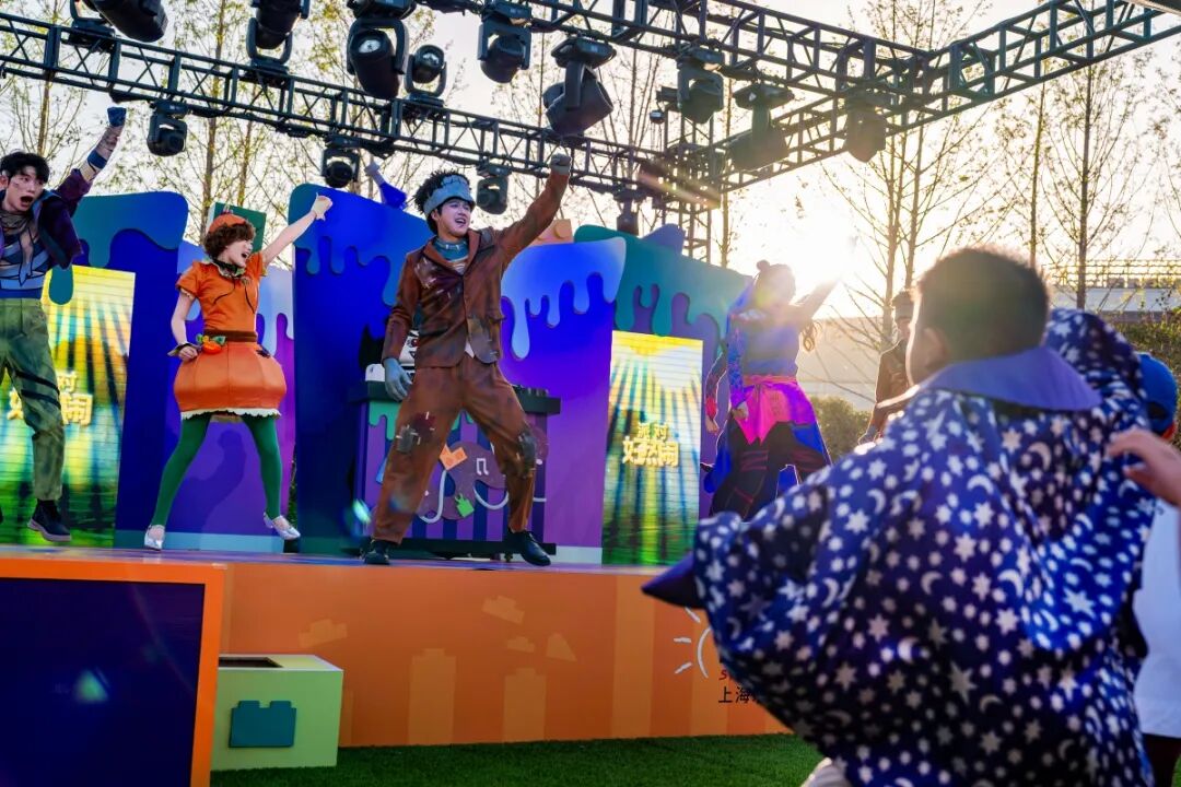魔性的旋律“树木咕噜,噢哩噢哩,搭搭搭搭”瞬间点燃草坪。僵尸伯爵一个滑步登场,率领小怪兽们一起疯狂摇摆。家长带着打扮成小巫师、小幽灵的孩子,其乐融融;也有年轻的游客组队前来,造型创意十足。在这里,盛装不仅不会被侧目,反而是一种融入派对的最佳方式。我站在人群中,看着眼前这片由灯光、音乐、欢笑和无数乐高积木构成的奇幻景象,一种强烈的抽离感涌上心头。它像是一个与现实隔绝的快乐气泡,让人暂时忘却了城市外的喧嚣与琐碎。