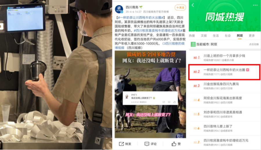 应邀消费者期待,喜茶于今年3月限时全国上线「雪域·牦牛乳恰安莫」,在上架一周后便因热销陆续售罄,带动产品原料牦牛乳多个相关讨论话题登上四川同城热搜,更引发全国各地的消费者在社交媒体上集体搜寻产品踪迹。为满足广大用户的返场期待,喜茶深入产品特色原料牦牛乳的供应上游,探索区域奶原料在全国范围内广泛供应的可能性。