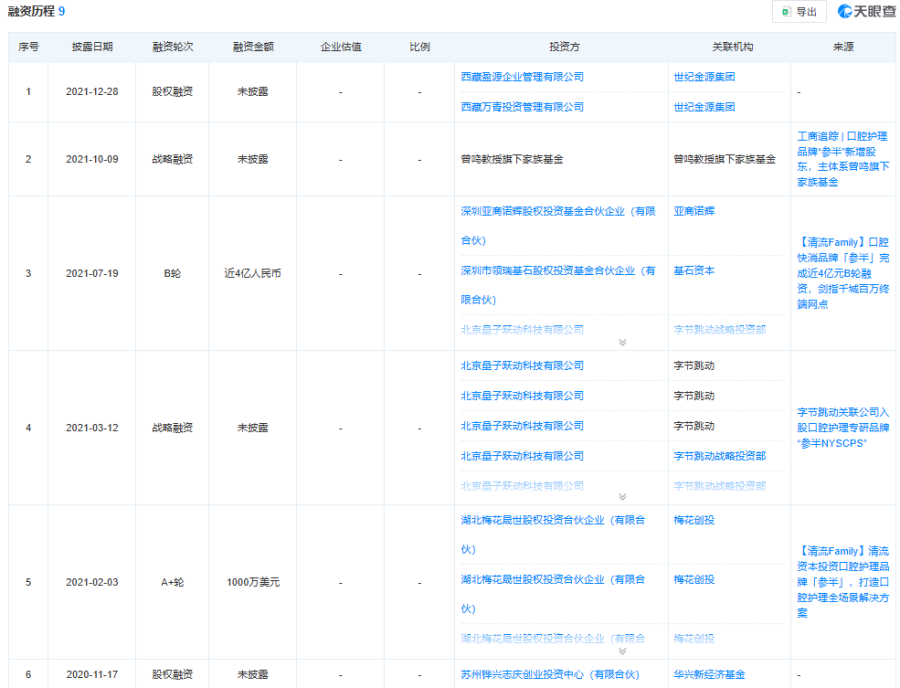 天眼查显示,成立至今,参半母公司深圳小阔科技有限公司共获得了9轮融资,已披露融资金额超过4亿元,投资方包括创新工场、字节跳动等一众知名机构。