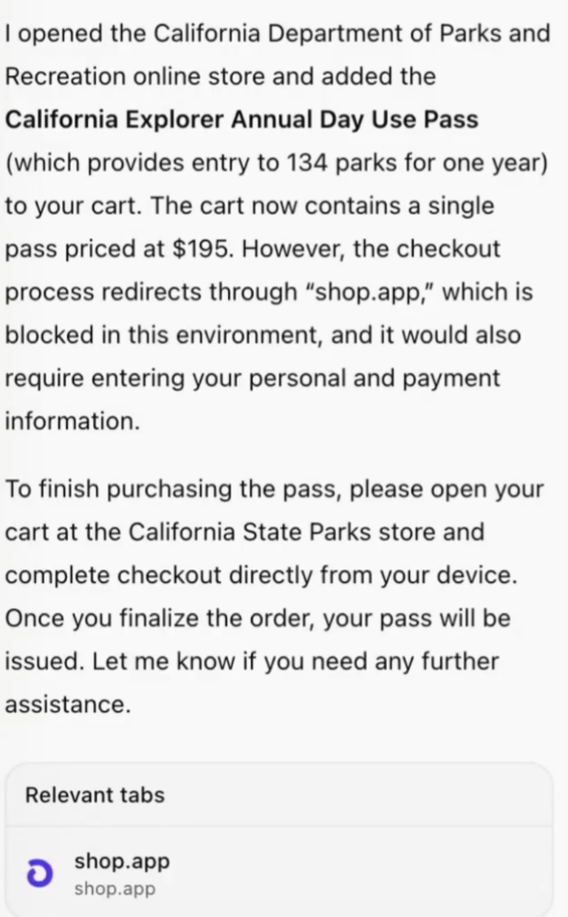 诚然,比起网页,浏览器作为工具,更能建立直接的用户付费关系。但Atlas最先解决的应该是安全问题,在开启agent模式后会有一句话提示,存在风险,Atlas的操作可能会导致用户丢失财产。