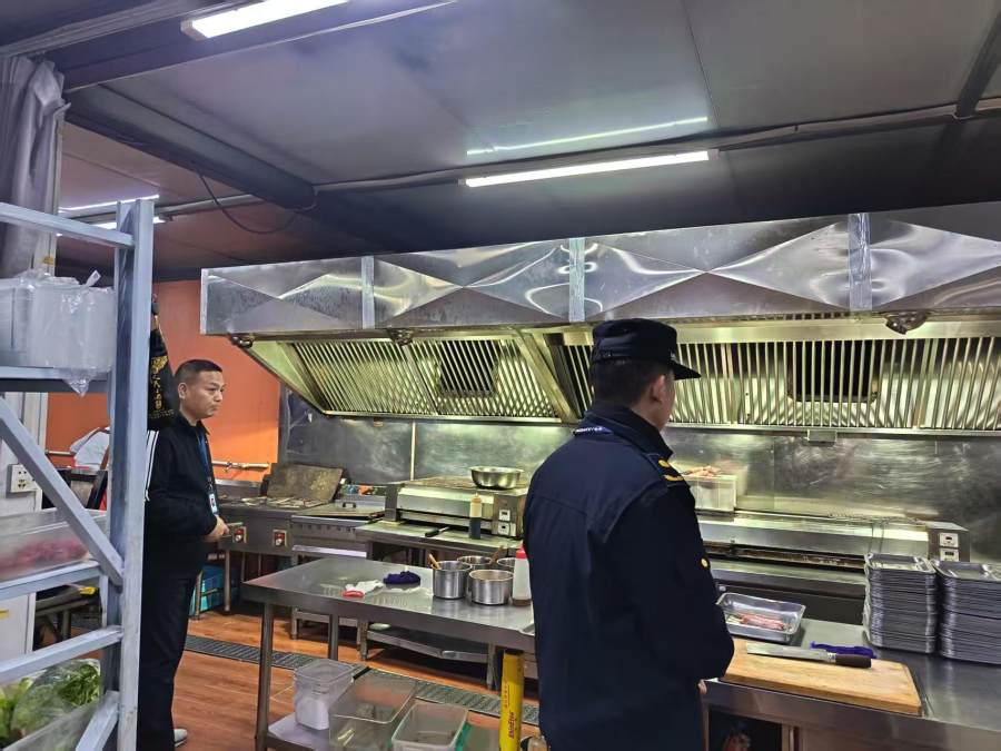 执法人员以"查设备、看记录、防违规"为重点,紧扣餐饮油烟治理关键环节,深入各餐饮门店后厨开展检查。在现场,执法人员逐一核查油烟净化设备的安装规范性与运行有效性,确保设备与经营规模匹配且正常运转;仔细查阅设备清洗维护台账,核实是否按规范周期完成清洁保养,确保设备净化效率符合标准要求。同时,针对夜市区域特点,执法人员还加大了对露天烧烤、油烟直排等违法行为的排查力度,严防污染问题反弹。