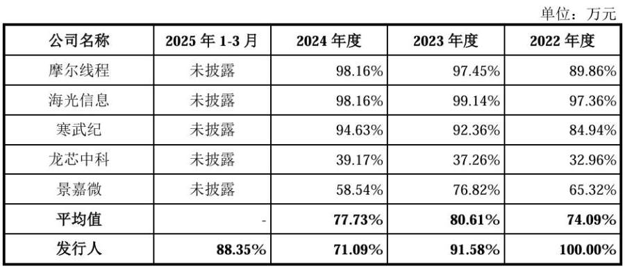 报告期各期,沐曦股份的研发投入分别为6.48亿元、6.99亿元、9.01亿元和2.18亿元,三年半累计研发投入超24亿元,且2022年至2024年的研发费用率均远高于100%,直到2025年第一季度才降至68.01%。