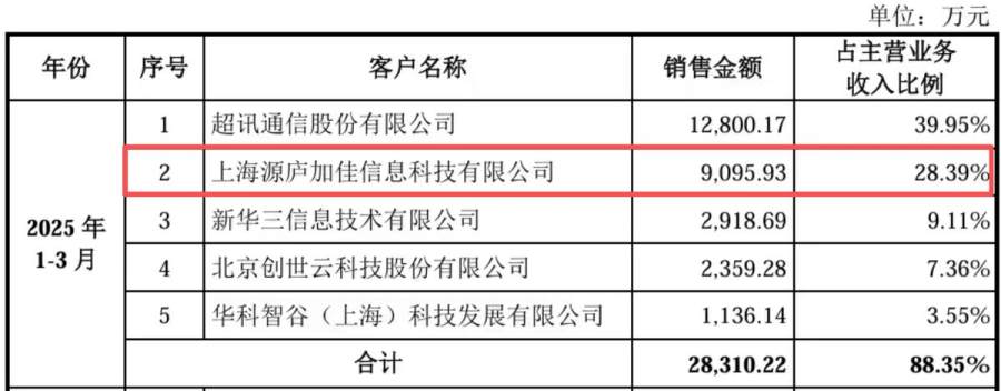 在沐曦股份的大客户名单中,源庐加佳的定位尤为特殊,为沐曦股份申报前十二个月新增股东,并在2025年一季度首次成为前五大客户。就二者是否存在关联关系,相关交易是否公允等问题,上交所在第二轮问询中予以重点关注。