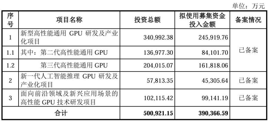 此番冲刺科创板上市,沐曦股份也计划将39.04亿元募资金额尽数投向新型高性能通用GPU研发及产业化项目、新一代人工智能推理GPU研发及产业化项目和面向前沿领域及新兴应用场景的高性能GPU技术研发项目,巩固技术护城河。