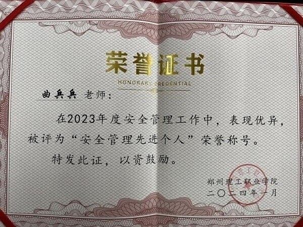 最让人动容的,他坚持对实训设备、管理制度进行长期跟踪优化,定期开展实训室资产核查、账目梳理,2次组织全院多媒体资产核查,7次指导系部完善实训台账,编写《郑州理工职业学院实训室简介汇编》《实验实训利用率汇编》,让实训管理从“一时保障”变成“长效服务”。有同事说:“有曲老师在,我们搞实训教学特别安心。”他却笑着回应:“这是我的工作,更是我的责任。”