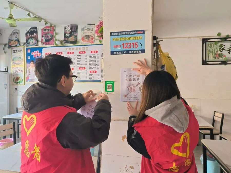 活动期间,志愿者们积极行动,深入辖区各大小餐饮门店,将宣传倡议落到实处。他们在餐厅入口、收银台等醒目位置张贴了精心设计的“光盘行动”“拒绝舌尖上的浪费”主题宣传画,同时,志愿者们还主动向店内负责人、服务员和正在就餐的居民分发“文明用餐”宣传单页,与商户沟通,鼓励其履行社会责任,主动提醒顾客按需点餐、提供打包服务;与村民交流,倡导大家摒弃“爱面子、讲排场”的旧观念,树立“吃多少、点多少”的新风尚。