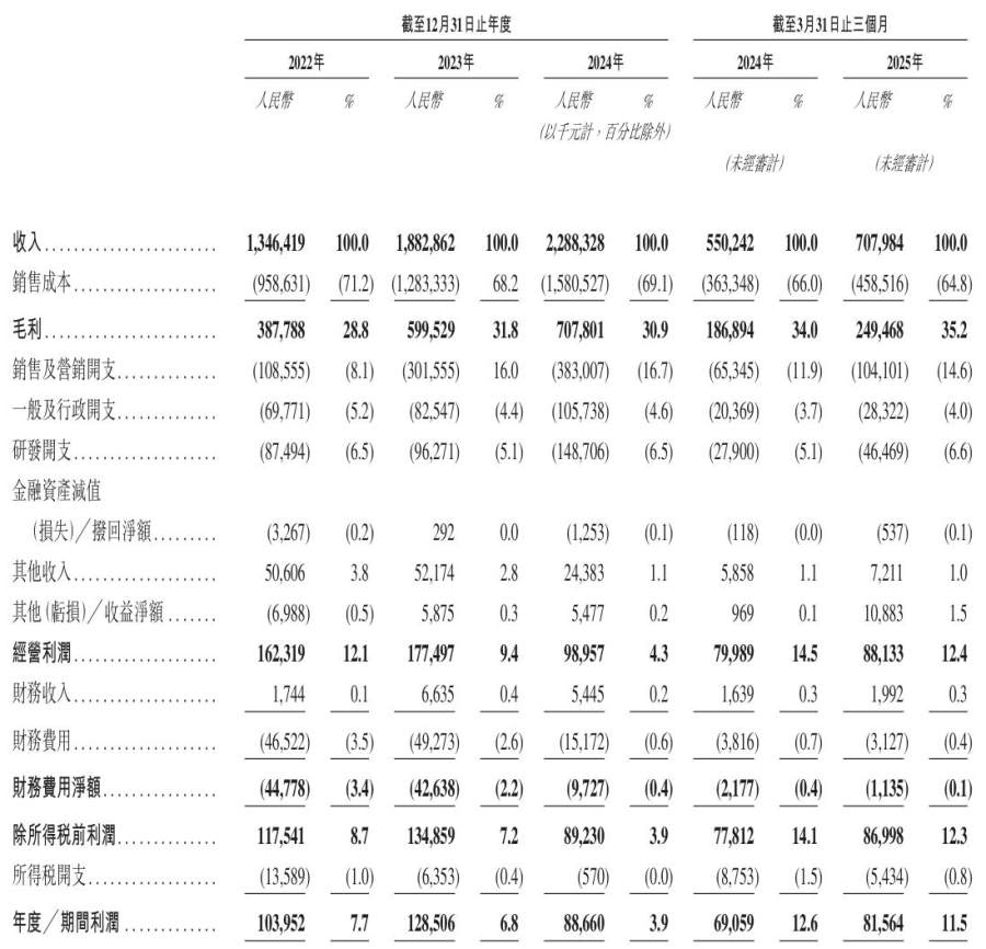 2022年、2023年、2024年度和2025年第一季度,创想三维的毛利分别为3.88亿元、6亿元和7.08亿元,复合年增长率约为35.1%;2025年第一季度该公司的毛利亦维持了33.5%的增长,来到2.49亿元。
