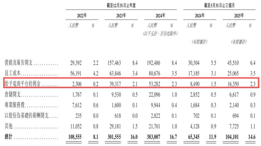 报告期各期,创想三维给予第三方电商平台的佣金费分别达到了230.6万元、3931.7万元、5328.2万元和1635.0万元,叠加高昂的社交媒体及搜索引擎的推广费用,以及KOL合作费等,共同推高了该公司的运营成本。